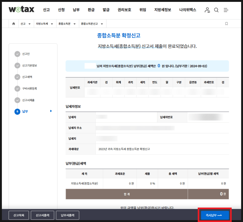 ⑥ 개인지방소득세 신고 완료~!