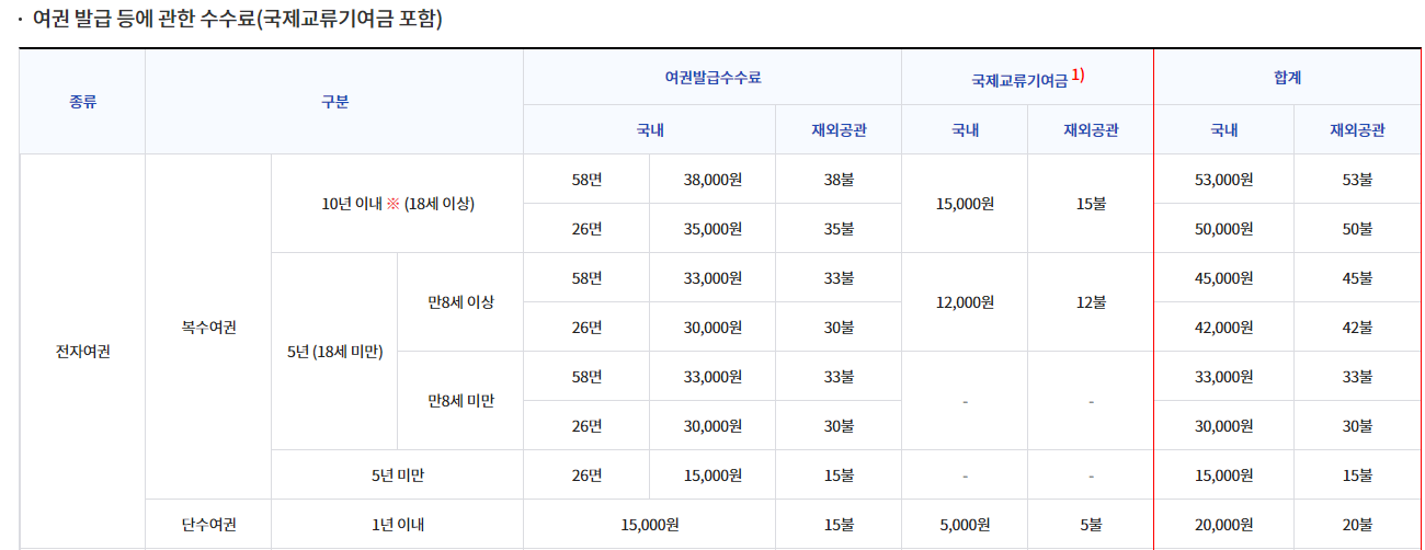 온라인 여권 재발급 비용은 아래와 같습니다. 평균 5만 원대로 재발급 진행 가능합니다.