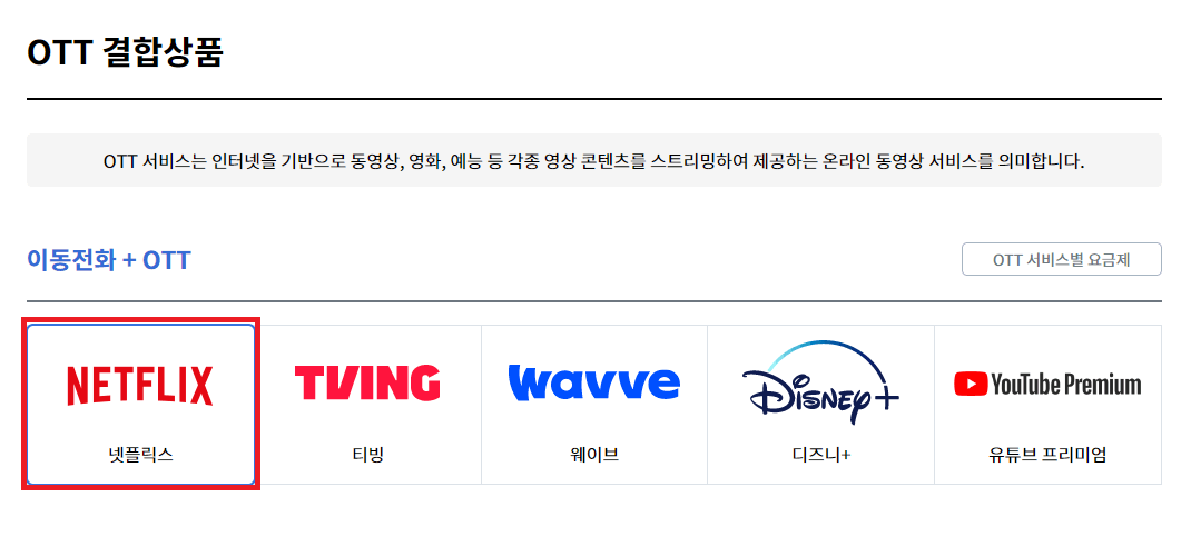 ② OTT 결합상품 메뉴에서 원하는 OTT 서비스 선택