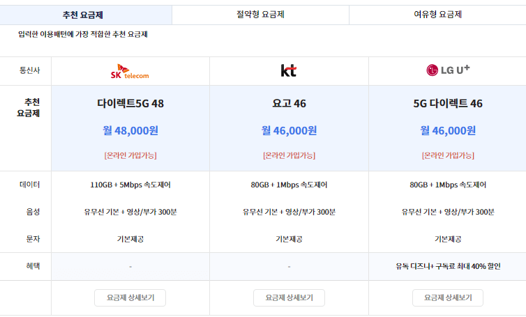 지금 바로 추천 요금제를 확인하고 싶은 분은 아래 링크에서 조회해 보세요~!