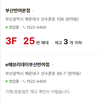 ⑤ 다른 매장을 추가 검색해서 재고 여부 확인 후 방문해서 구매하면 끝! 입니다.