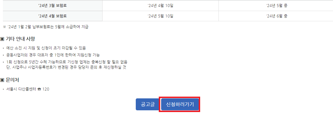 - 공고일 이전 신청자의 경우도 ’24년 보험료 납부분부터 지원비율 20% 자동적용