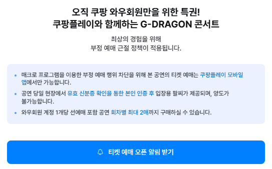 ✔ ‘G-DRAGON OFFICIAL MEMBERSHIP’ 가입자 + 쿠팡와우 회원